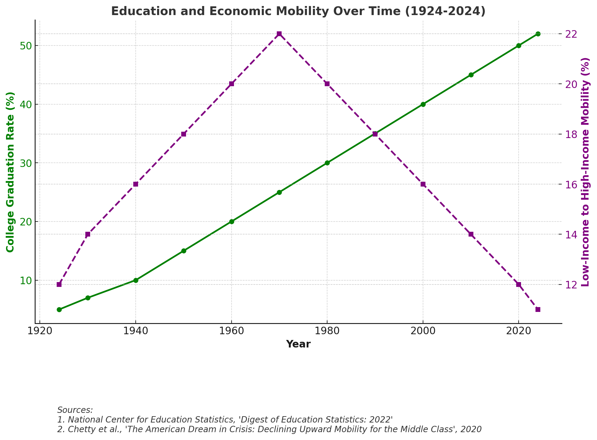 Education and Economic Mobility Over Time (1924-2024)