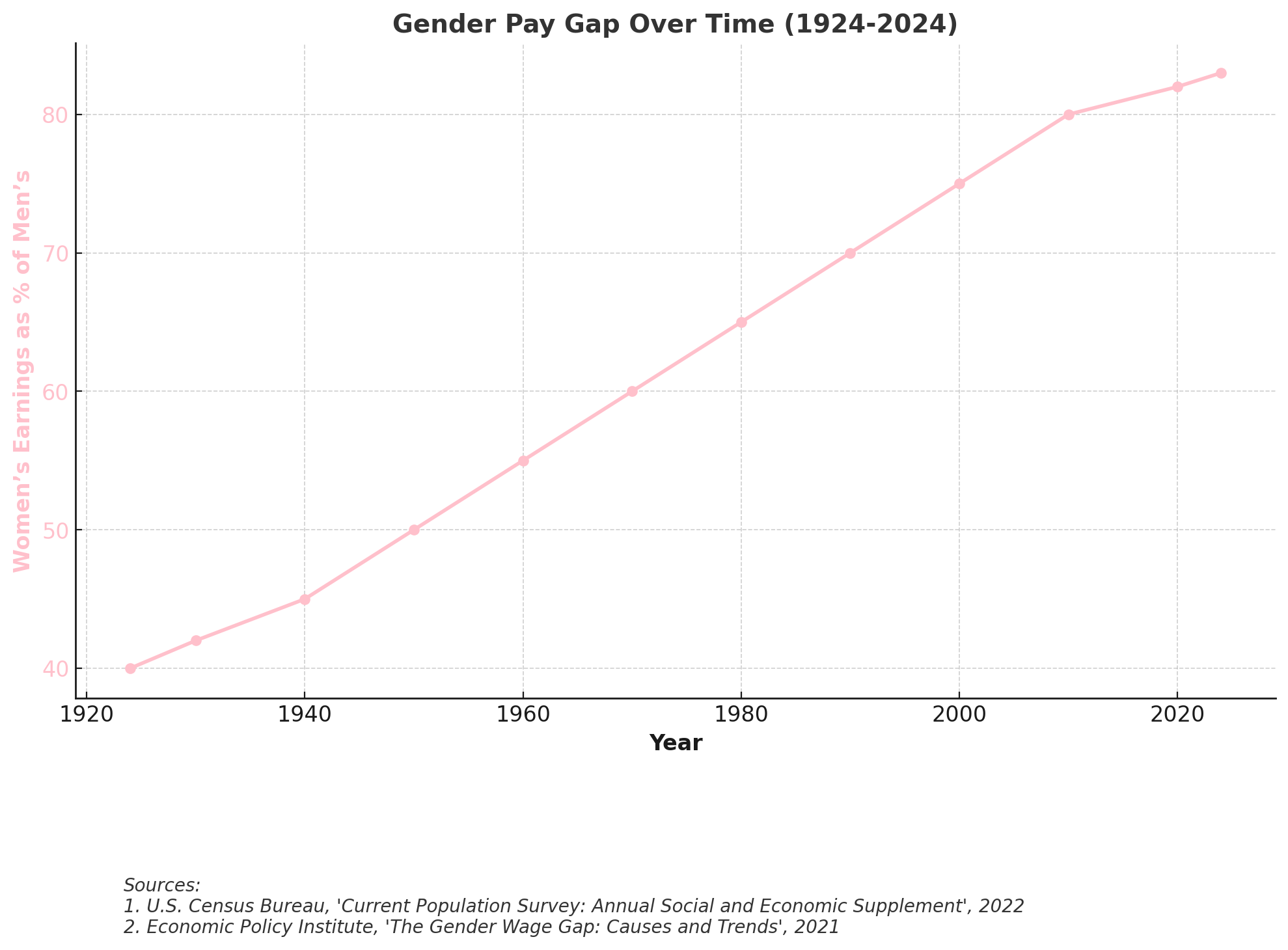 Gender Pay Gap Over Time (1924-2024)